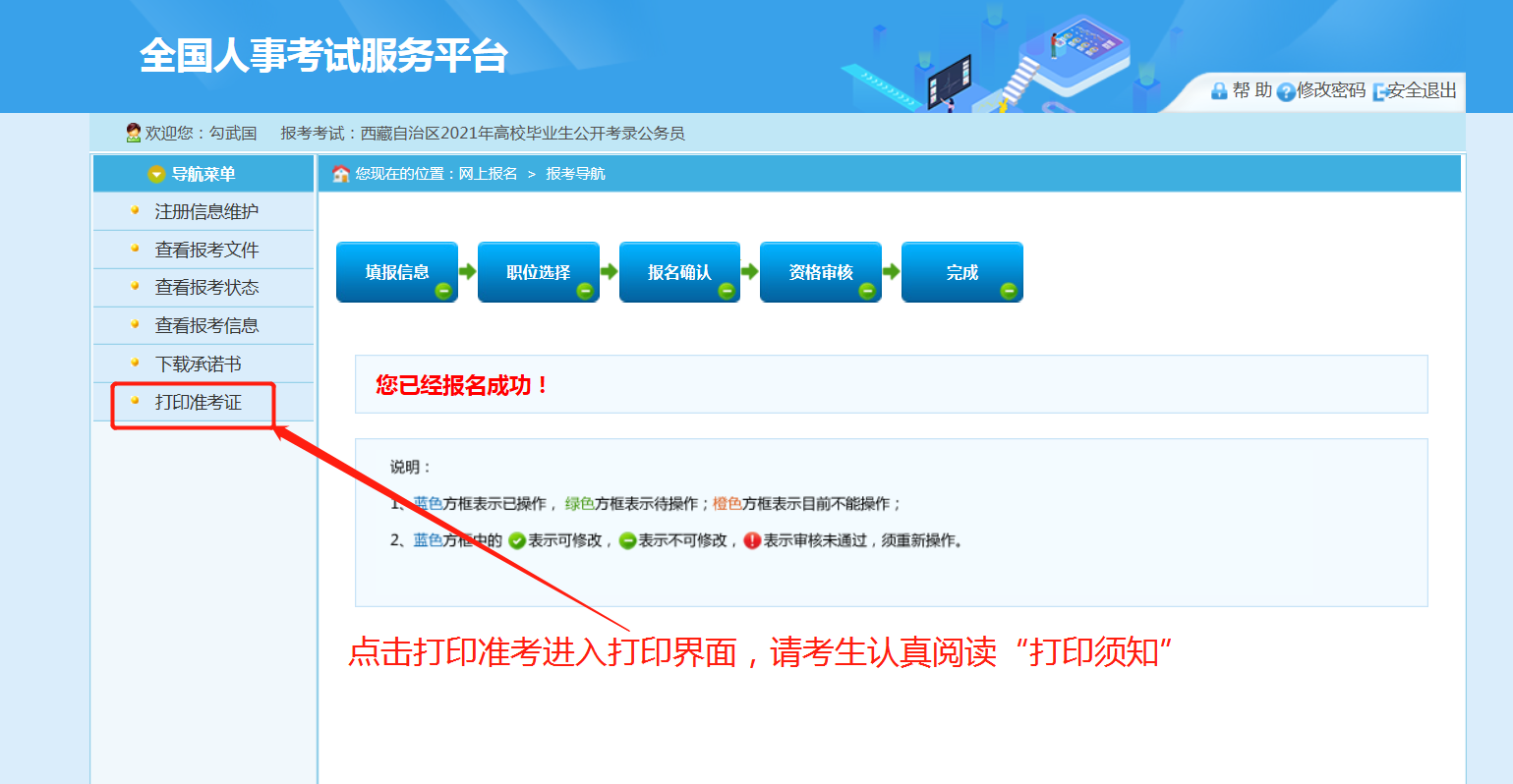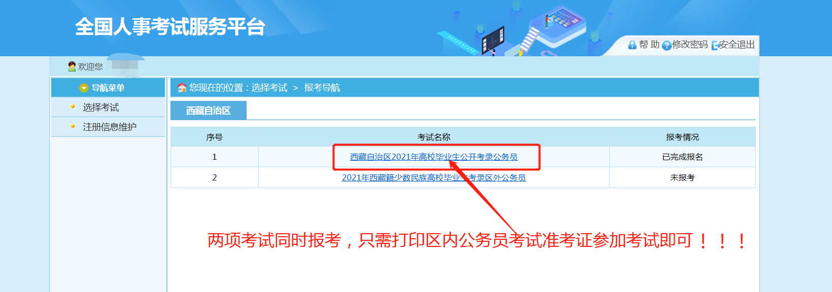 西藏自治区2021年高校毕业生公开考录公务员笔试准考证打印入口