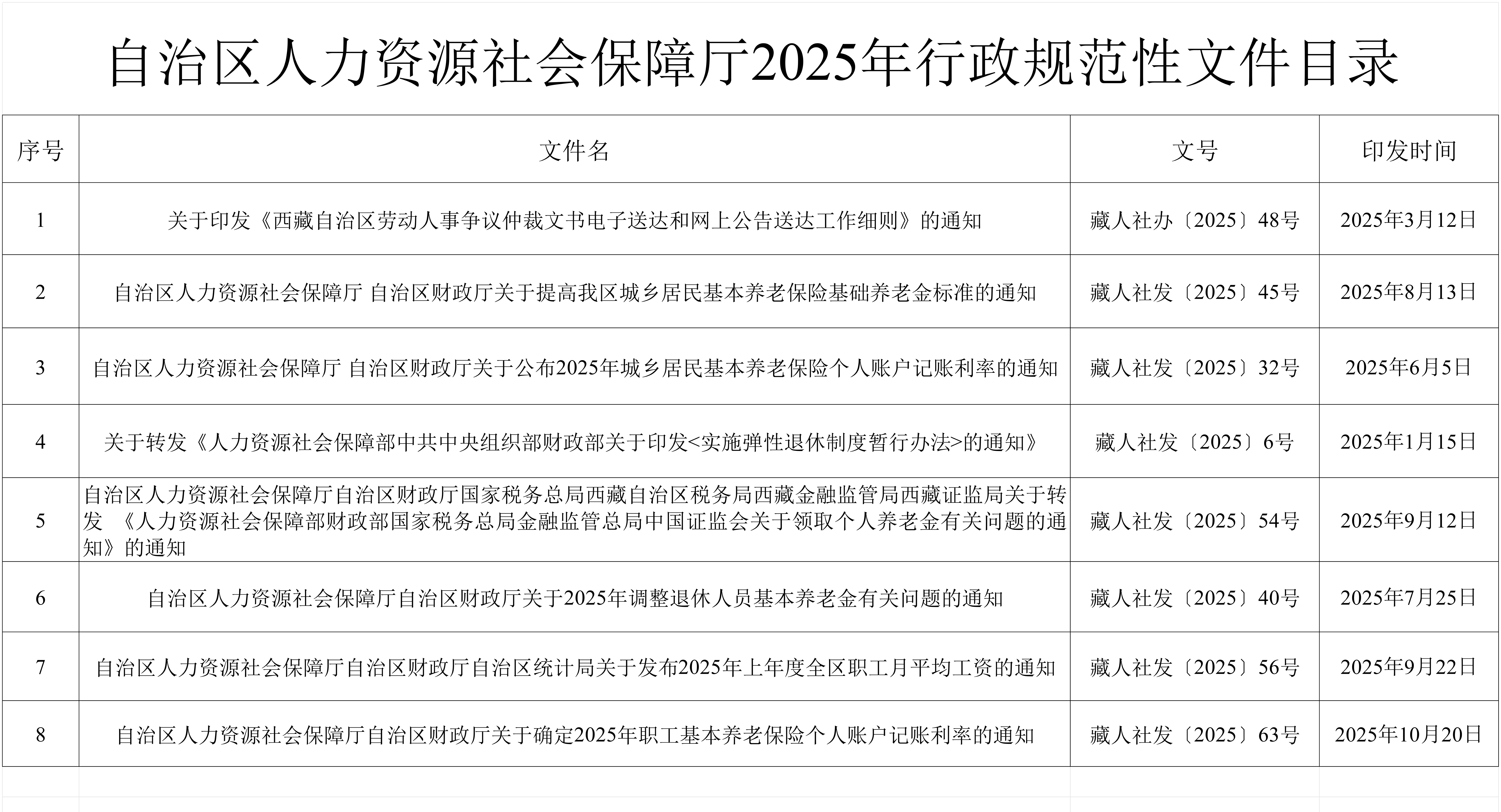 自治区人力资源社会保障厅2025年行政规范性文件目录