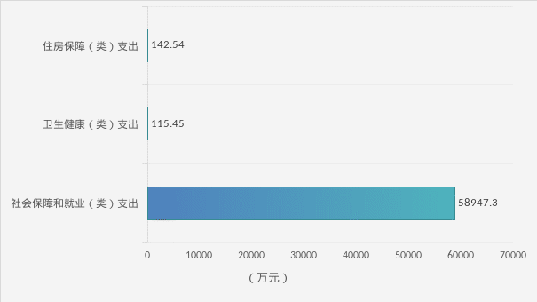 2024年度一般公共预算财政拨款支出59,205.30万元,主要用于以下方面:一般公共服务(类)支出0万元,占0%;社会保障和就业(类)支出58,947.3万元,占99.56%;卫生健康(类)支出115.45万元,占0.2%;住房保障(类)支出142.54万元,占0.24%。